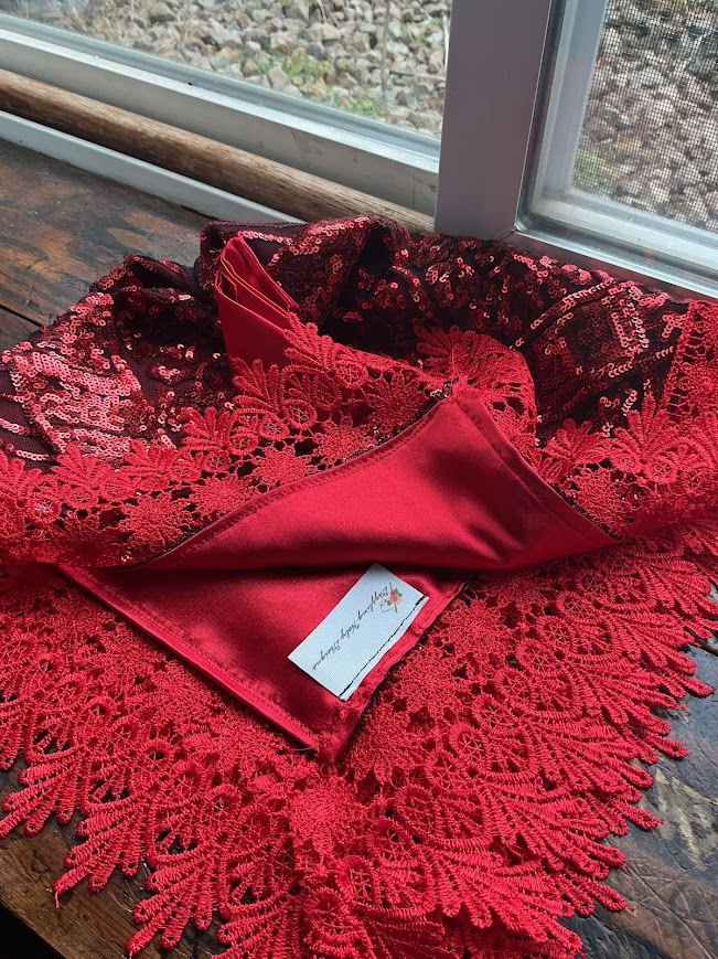 Blue, Orange and Cream Stripes Lapscarf with Tan Ruffle lace No Wristlet 24x24